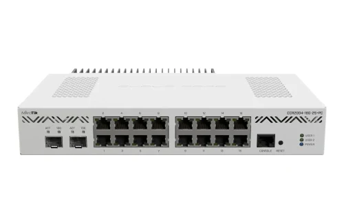 This powerful and affordable router crushes all previous CCR models in single-core performance. 16x Gigabit Ethernet ports, USB, 2x10G SFP+ cages, active cooling and the best single-core performance per watt & best overall performance per watt among all the CCR devices.