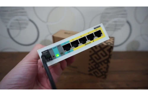 5x Gigabit PoE out Ethernet Smart Switch, SFP cage, plastic case, SwOS